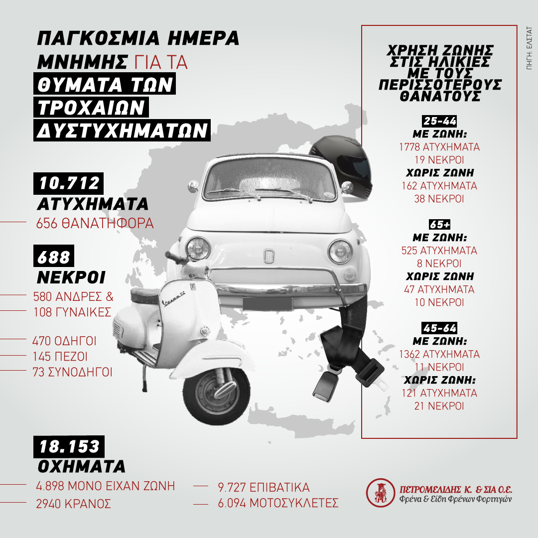 Infographics για την Παγκόσμια Ημέρα Μνήμης για τα Θύματα των Τροχαίων Δυστυχημάτων